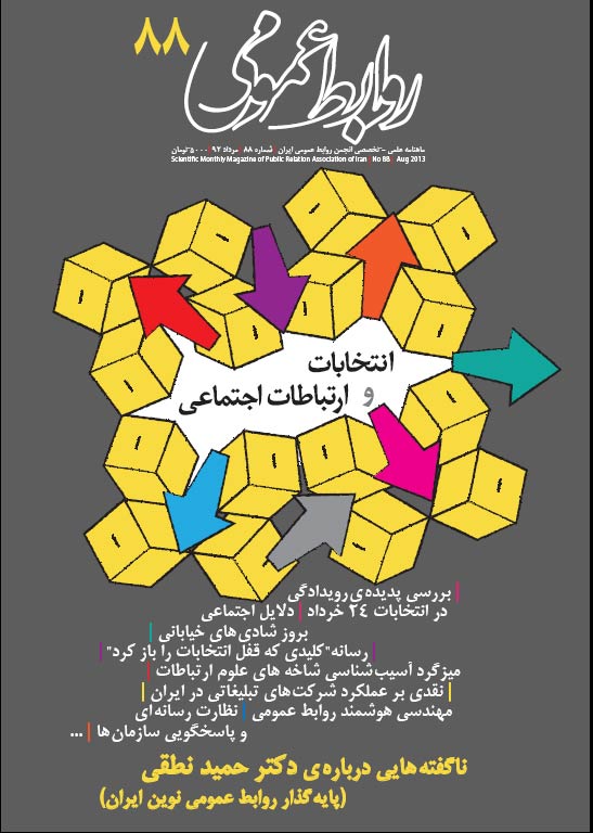 هشتاد و هشتمین شماره ماهنامه روابط عمومی با دو پرونده اختصاصی با موضوعات«ارتباطات اجتماعی و انتخابات» و «آسیب شناسی تبلیغات تجاری در ایران» منتشر شد.